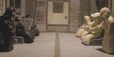 Akcja filmu rozgrywa się w metrze, gdzie czarne i białe postaci, choć wiele je łączy, nie chcą i nie umieją żyć razem.